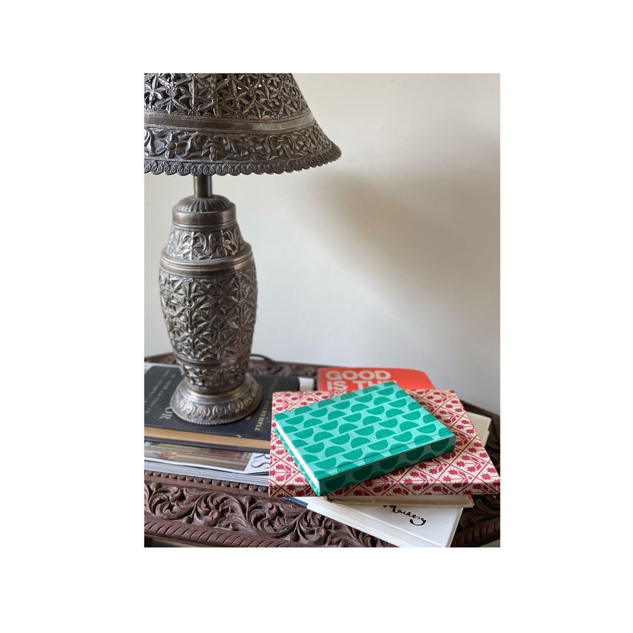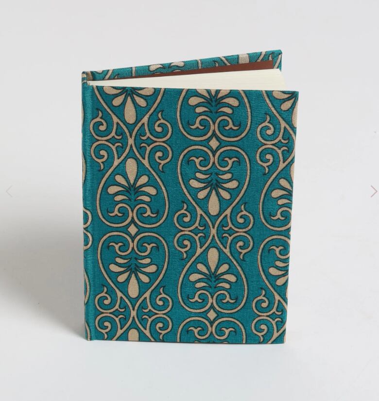 華やかな印象を与える <I was a Sari> (アイ・ワズ・ア・サリー/私はサリーだった。)のノート。インドの女性の伝統衣装、サリーの布を使用したカバー回りは見る人の目を惹きつけます。